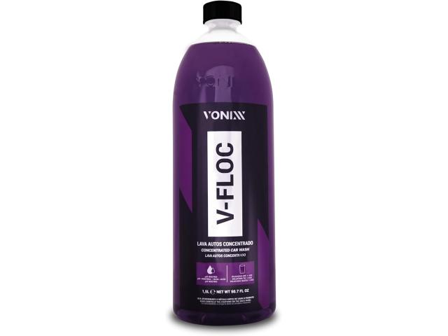 V-FLOC é um lava autos de alta performance e de pH neutro. Sua fórmula contém agentes condicionadores e tensoativos especiais que proporcionam uma lavagem suave e eficiente. V-FLOC tem alto grau de lubrificação, promovendo redução significativa do coeficiente de atrito, proporcionando um melhor deslize da luva de microfibra e reduzindo de forma efetiva as chances de microrriscos na pintura. V-FLOC também promove brilho e aspecto de renovação da pintura. DILUIÇÃO: 1:20 – Uso na Snow Foam: 1:400 – Lavagem comum com balde.