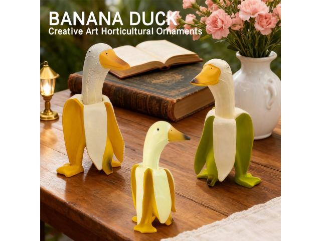 Creative Resin Banana Duck Statue, Whimsical Banana Duck Yard Art, Sculpture Funny Yellow White Figurine, for Outdoor Home Garden Lawn Office Porch Decor