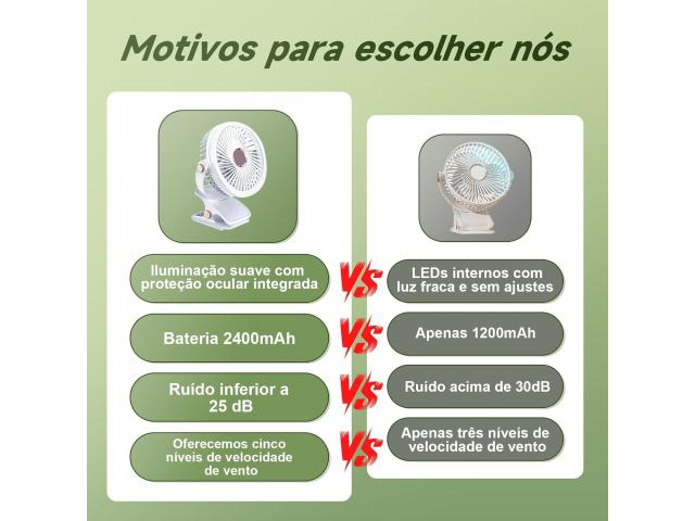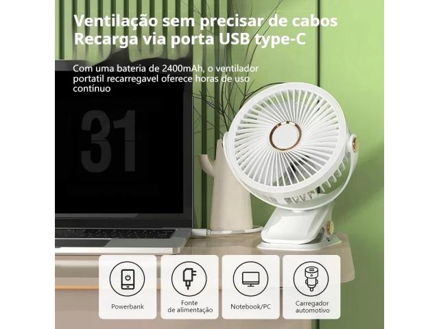 Bateria de Longa Duração: Com uma bateria de 2400mAh, o ventilador portatil recarregavel oferece horas de uso contínuo, permitindo que você desfrute de ar fresco onde quer que vá, sem a preocupação de ficar sem energia.